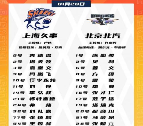 上海:古德温24分,怀特塞德16分14篮板3盖帽,洛夫顿11分,张镇麟3记三分9分,王哲林4分7篮板2助攻。北京:翟晓川12分6篮板3助攻2抢断,陈盈骏8分,杰曼14分8篮板5助攻,贝利15分。