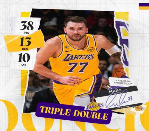 轰38+13+10创纪录!湖蜜高呼东契奇世界最强詹姆斯:向他致敬