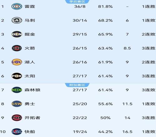 随着主场111-106险胜马刺,火箭豪取三连胜,目前以26胜15负排名西部第四,湖人则以26胜16负紧随其后。