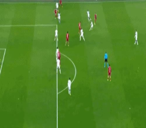 第40分钟,弗林蓬右路突破传中,萨拉赫抢点脚后跟巧妙打门,擦着横梁上沿稍稍高出。