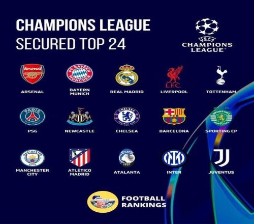 除了这两支提前锁定优势的球队外,皇马、利物浦、热刺、巴黎、纽卡、切尔西也暂时跻身直接晋级区,占据了当前直通16强的剩余席位。