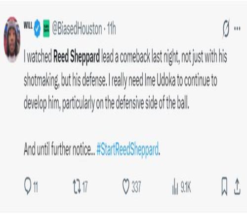 休媒:其实选择很简单,既然火箭用探花签选了谢泼德,就不要用那些G联赛的后卫,就让谢泼德打就好了。