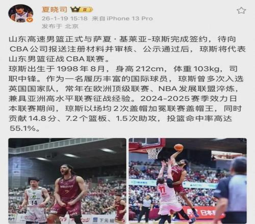 山东男篮官宣新外援